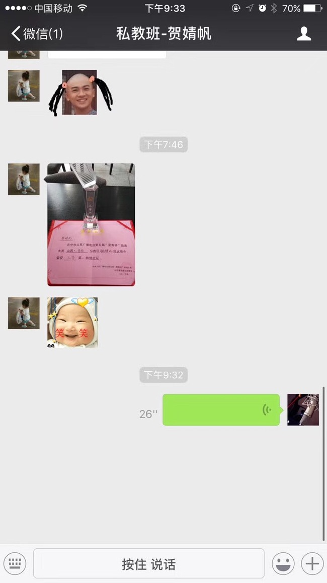 恭喜私教班学生-阳光,被日照市电视台特招进入电视台,阳光开过酒吧、做过婚礼主持,因超级热爱声音,曾邀请我去日照授课,后跑去上海听我给别的机构授课,最后于去年来北京进修,经过一年多的努力,声音作品突飞猛进!