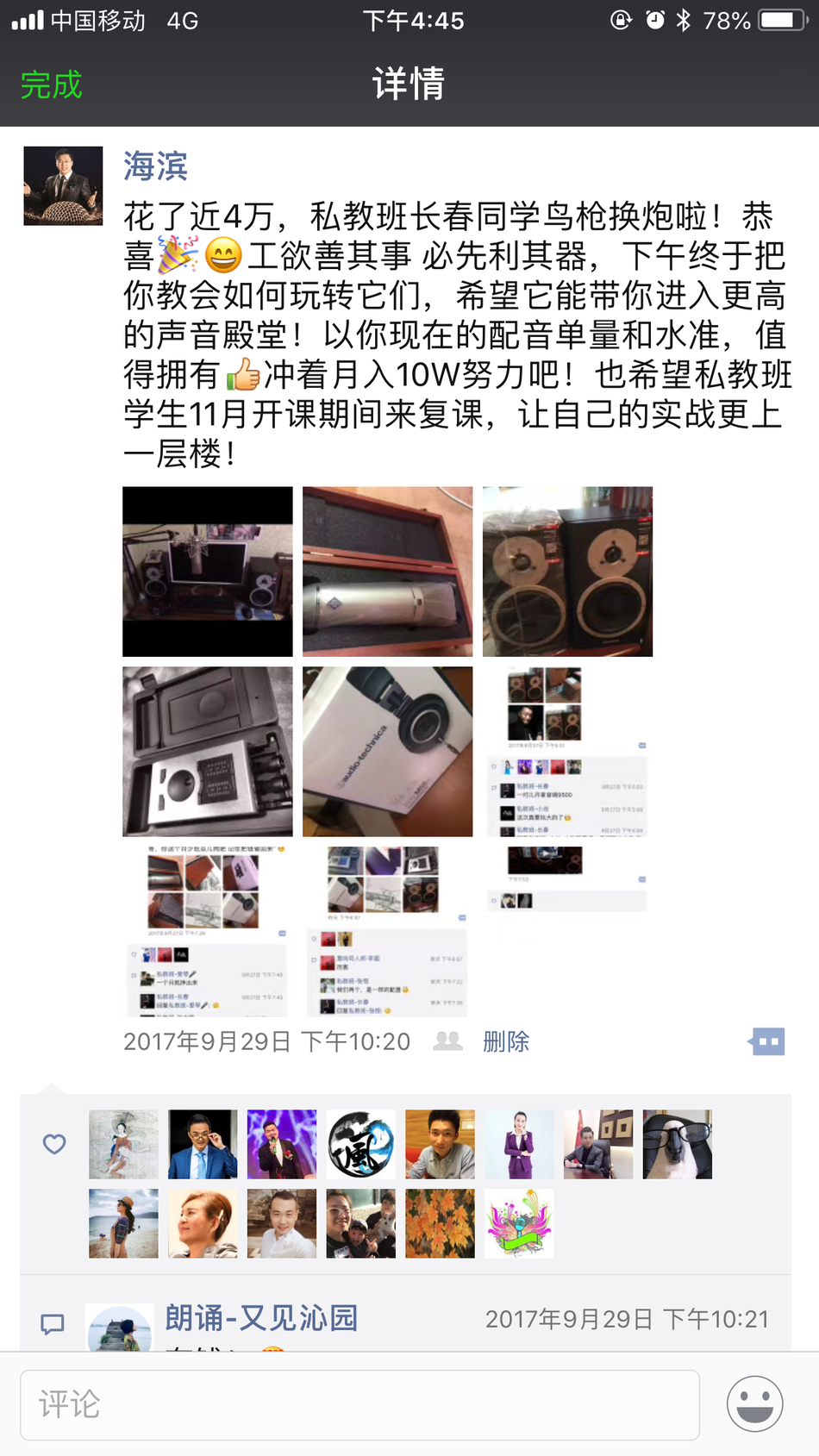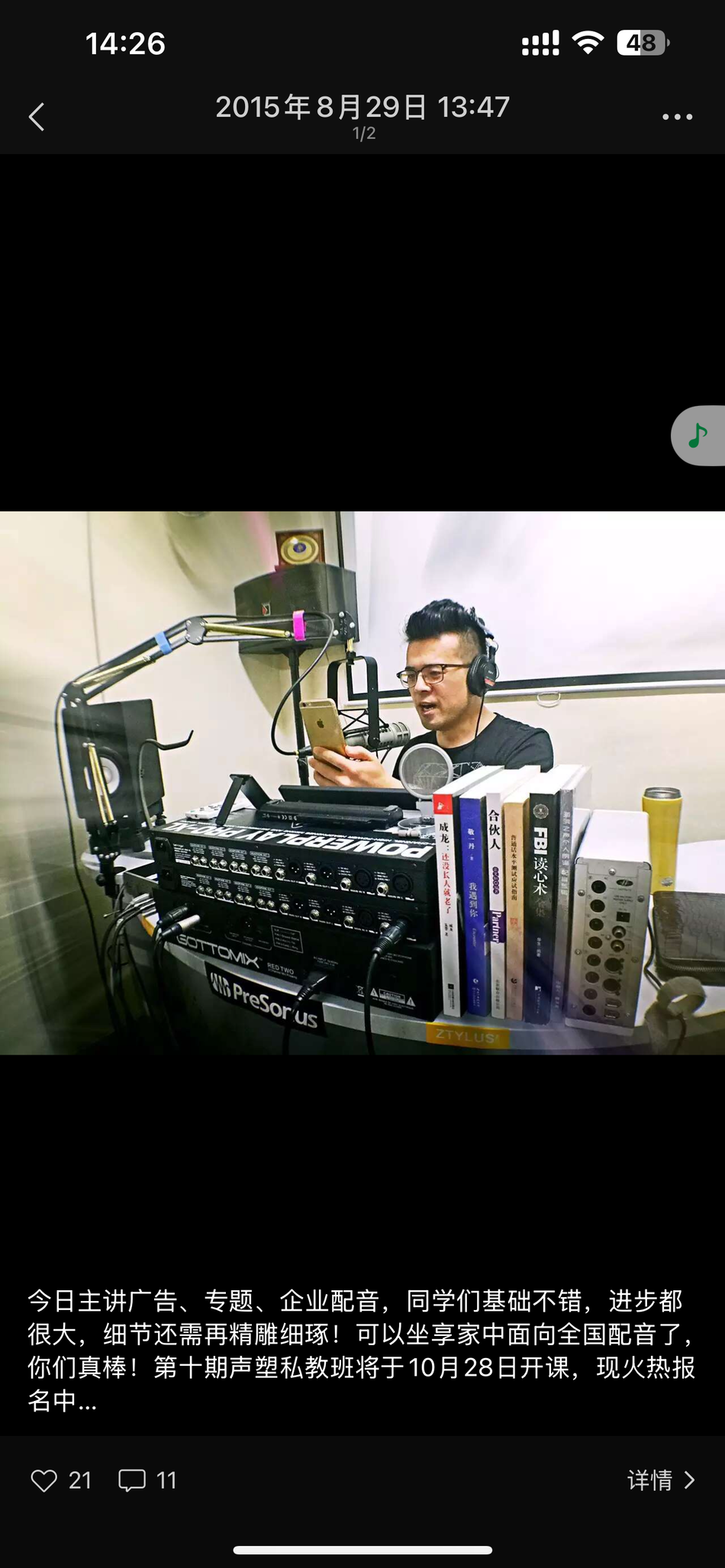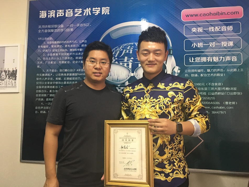 恭喜辽宁沈阳学生-关毅,在海滨老师声音塑造私教班学习完后,成功配音接单!并开办自己的录音棚!