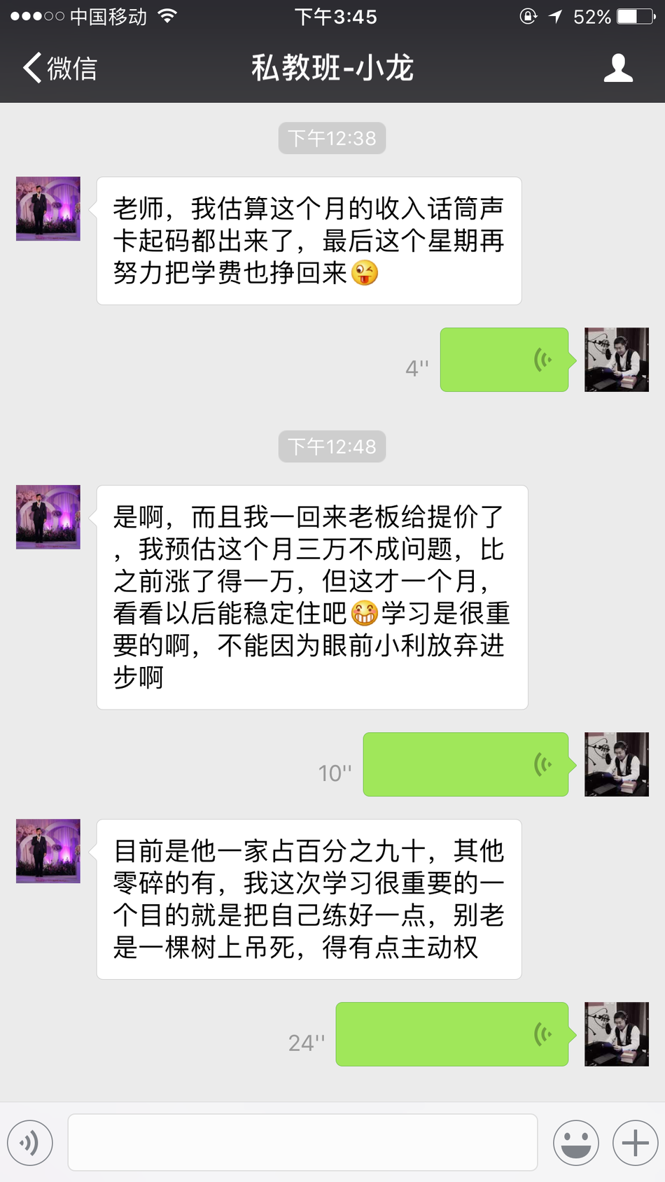 恭喜山东济南学生-小龙,在海滨老师声音塑造私教班学习完后,成功配音接单!从月入3万元,到现在月入8-10万左右!