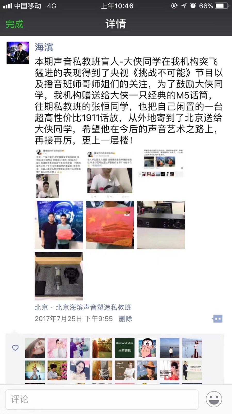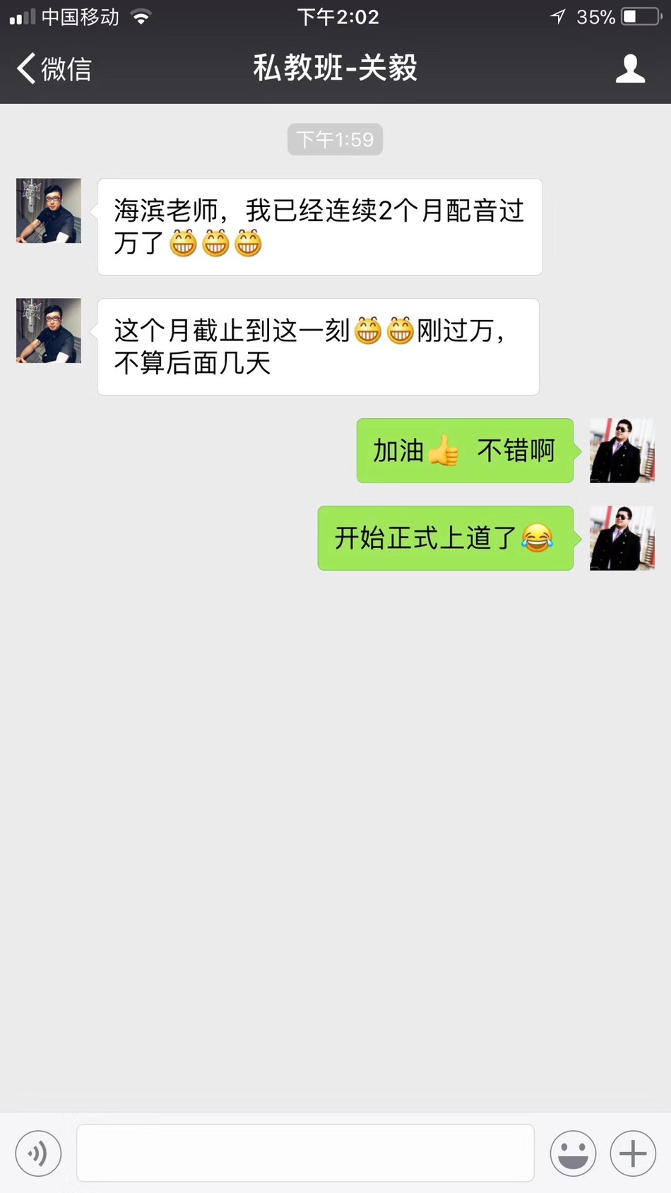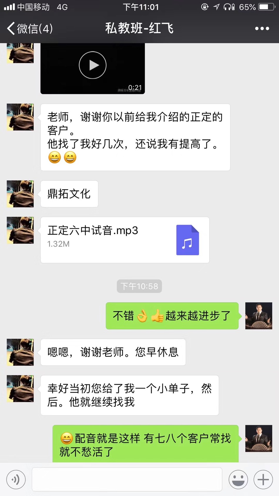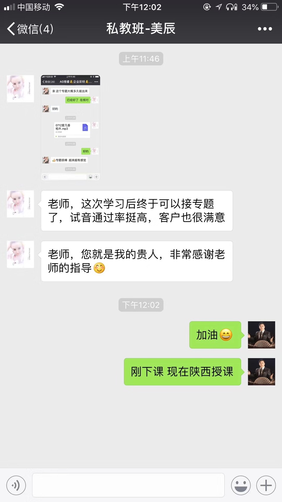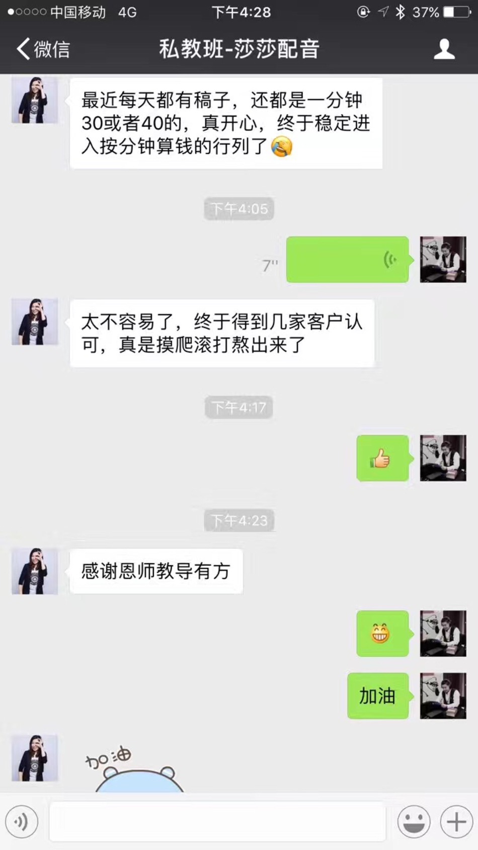 恭喜河北辛集盲人学生-大侠,在海滨老师声音塑造私教班学习完后,成功配音接单+开办青少年培训!每天不断收入!