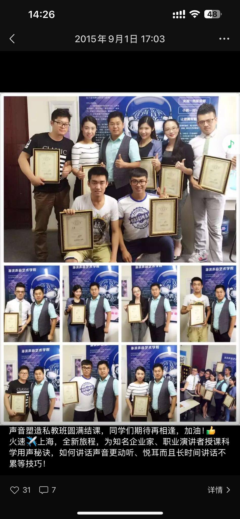 恭喜山西学生-冰汐,在海滨老师声音塑造私教班学习完后,开办个人《迷之声》声音培训机构!