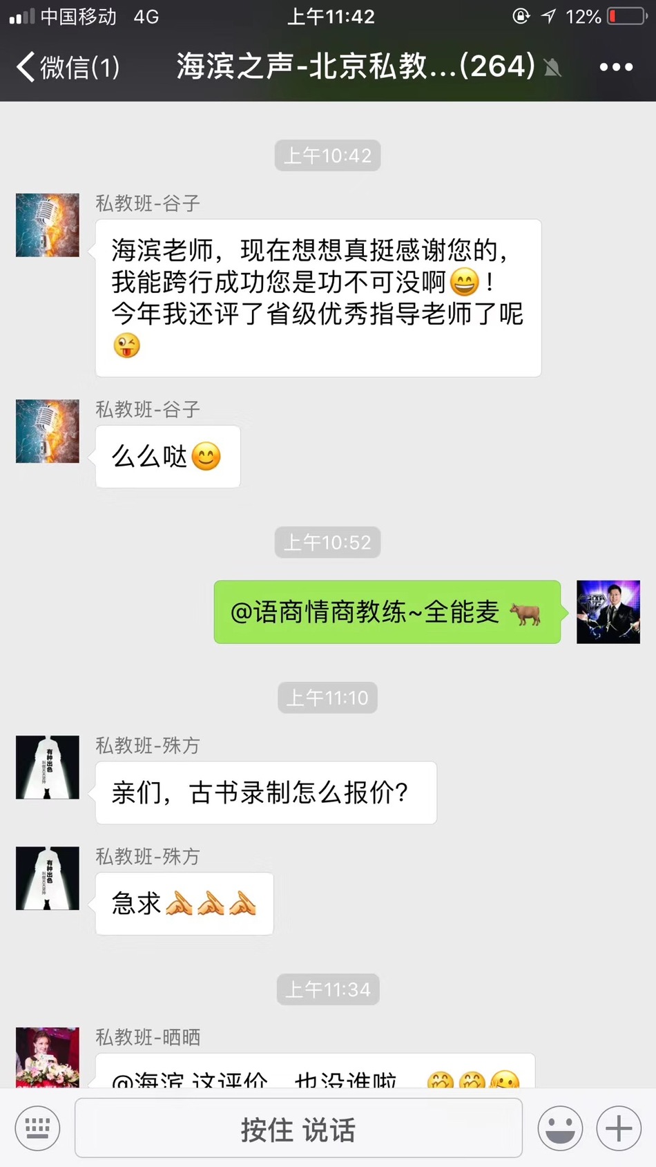 恭喜河北唐山学生-谷子,在海滨老师声音塑造私教班学习完后,具备专业级水平,成功应聘口才培训讲师!